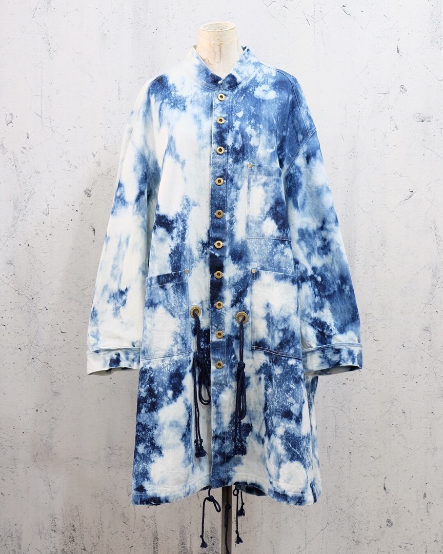 ケミカルウォッシュ仕立てのデニム地のコート。ケミカルウォッシュ自体そんな珍しいものではないのですが見れば見るほどこの色合いのバランスに魅了される出来。こればかりはデザイナーの感性によりできる事で真似のしようがない素敵な色。