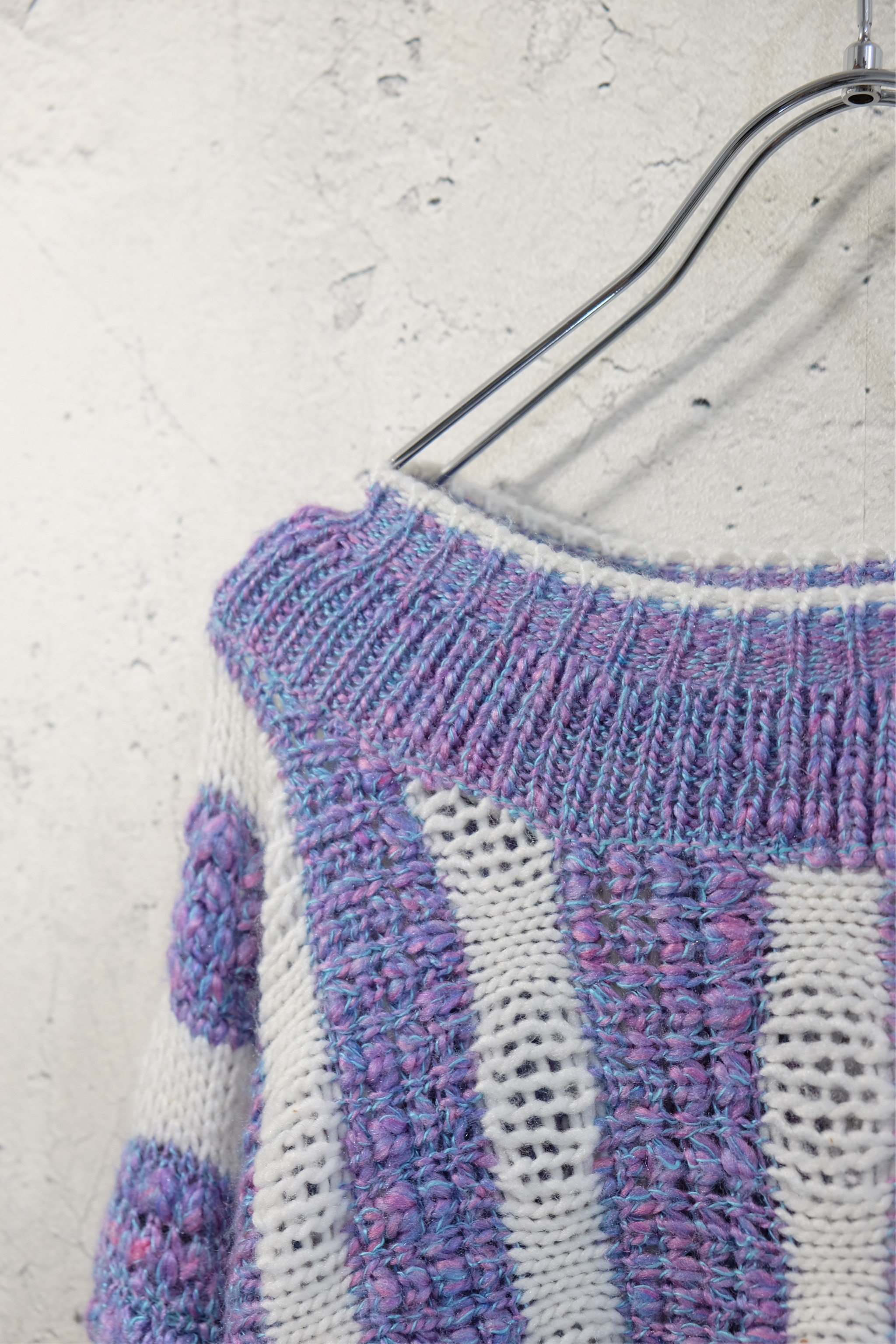 心地よいモヘアのブロックチェック柄ニット。色合いも暗くなさすぎない所がとても好き。