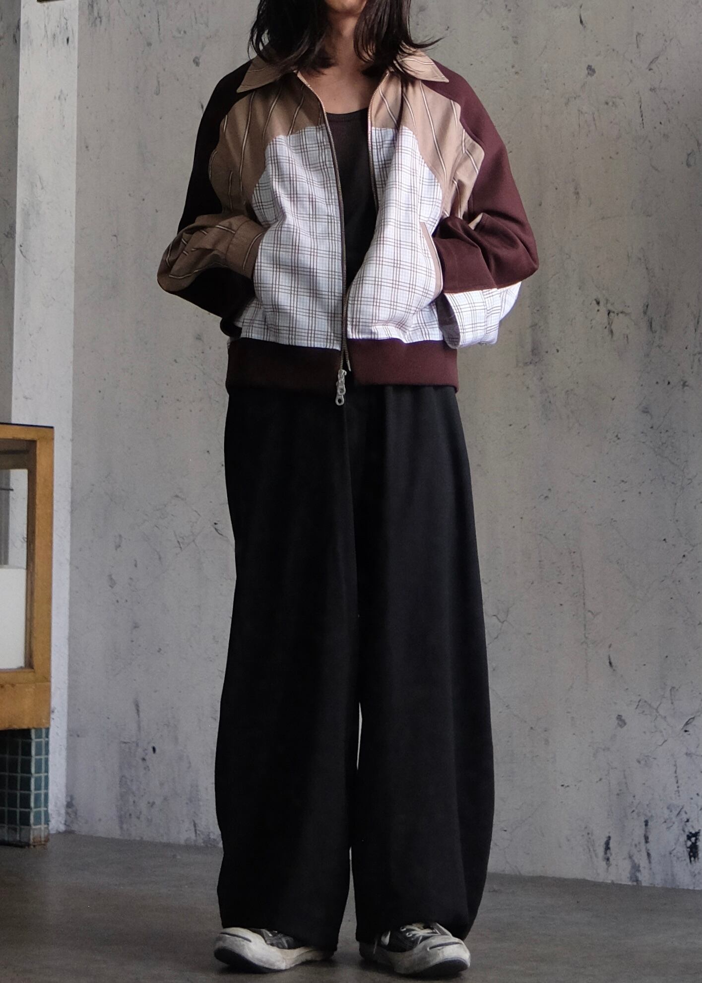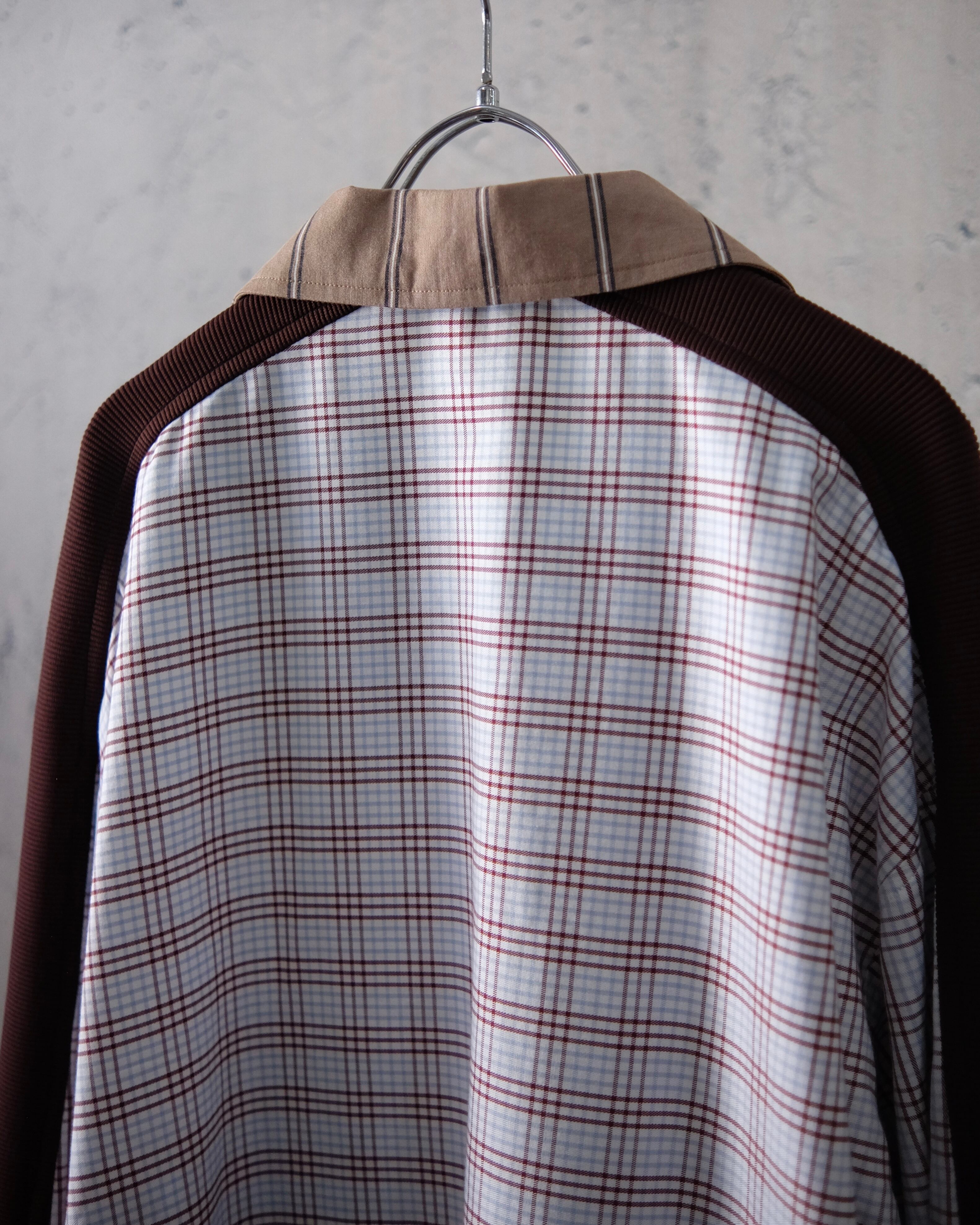 Enshelteと共同製作をしておりますリメイクシリーズ。こちらは古着のシャツを2枚使用しリブと合わせたジップアップブルゾンになります。