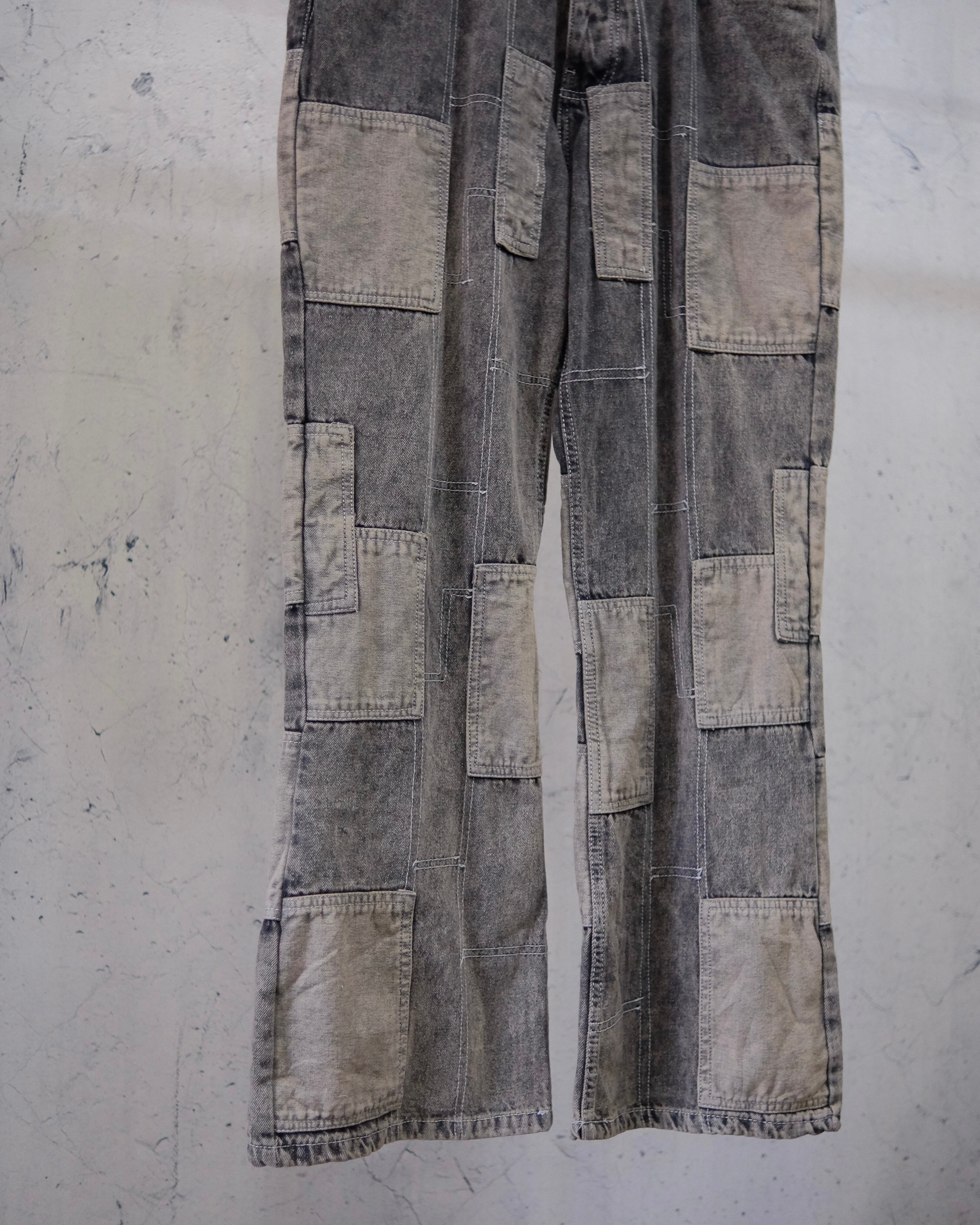 デザインが兎に角素晴らしいと感じるフレアデニムパンツ。まずパッと見た感じのシンメトリーのパッチワークは白のステッチと合間って簡易電気回路図の雰囲気がかなり可愛いです。