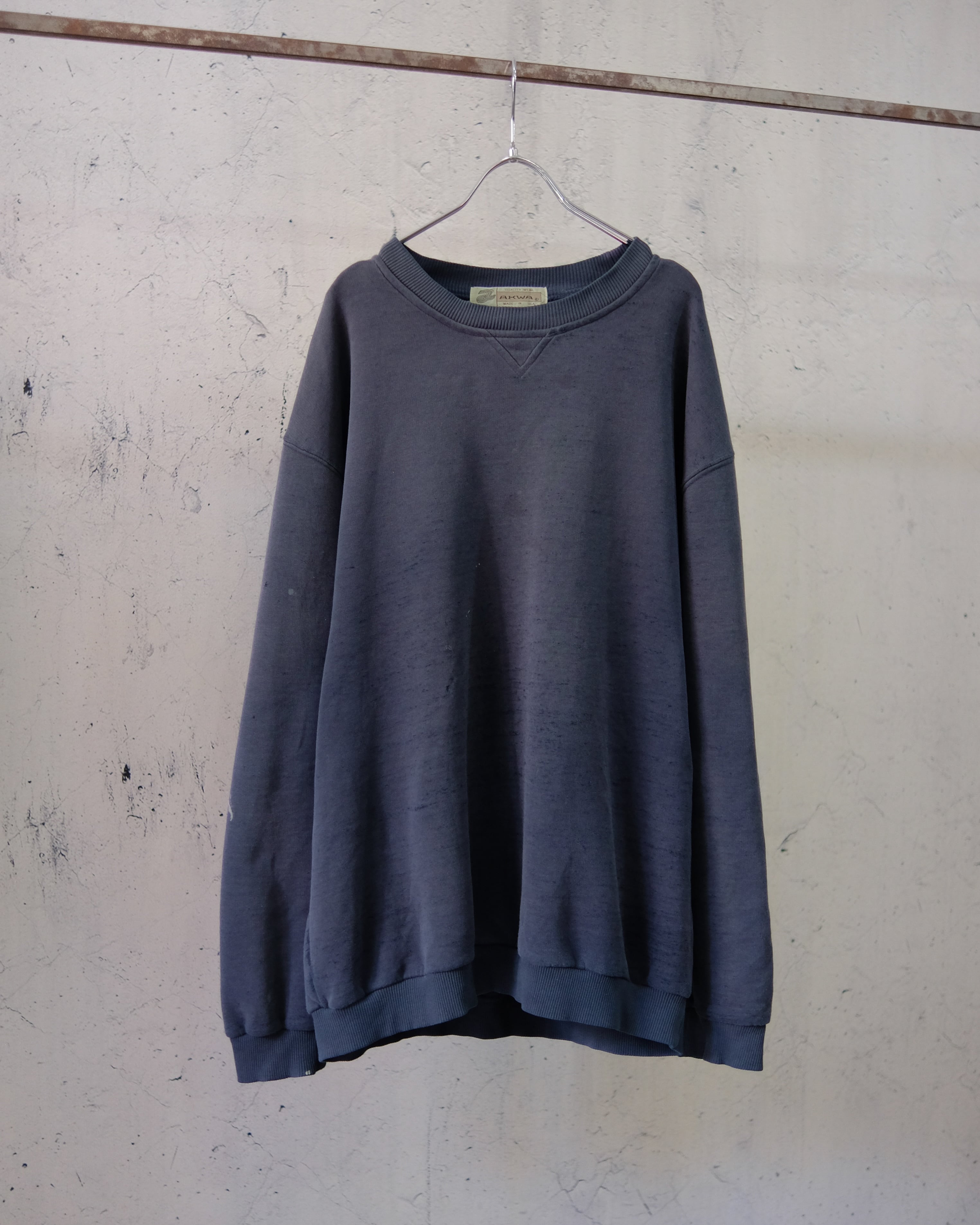 シルエットは表記XLのリラックスしたサイズ感で、ボロスウェットならではのラフな着こなしがしやすい一枚です。難しく考えず、ただ袖を通してみると不思議とそれだけでサマになる、そういう服だと思っています。万人受けはもちろんしませんが純粋に好きだなと感じてもらえる方にはかなりオススメです。