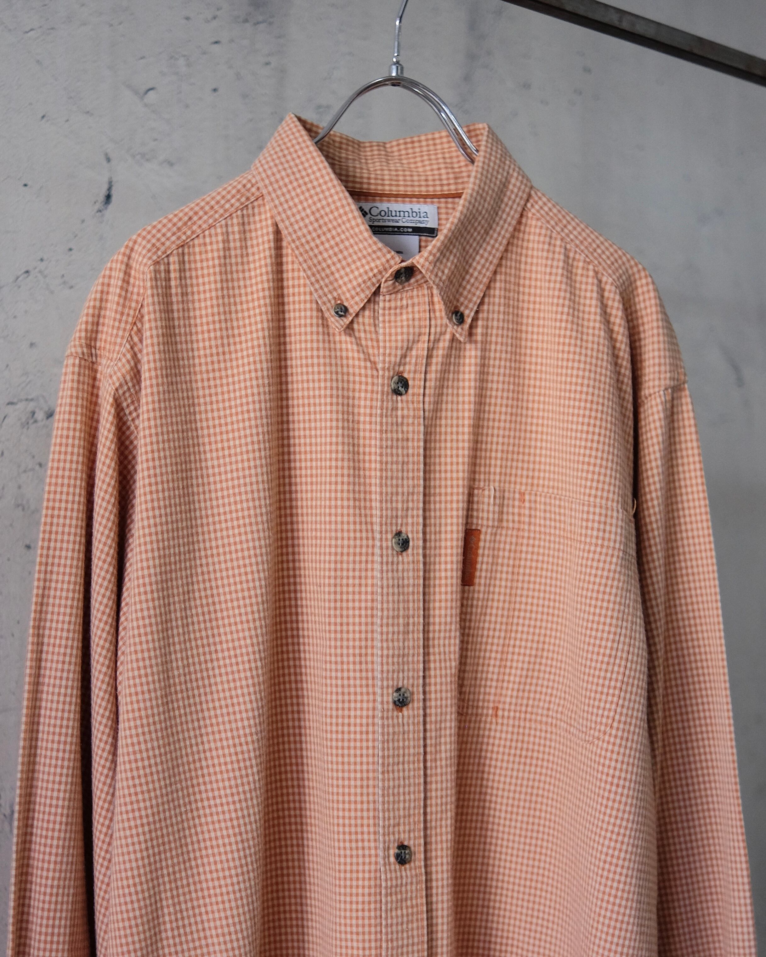 ボタンダウン仕様の襟元に、パッと目を引くオレンジと人気が高まりつつあるギンガムチェックパターンがよく映えます。
