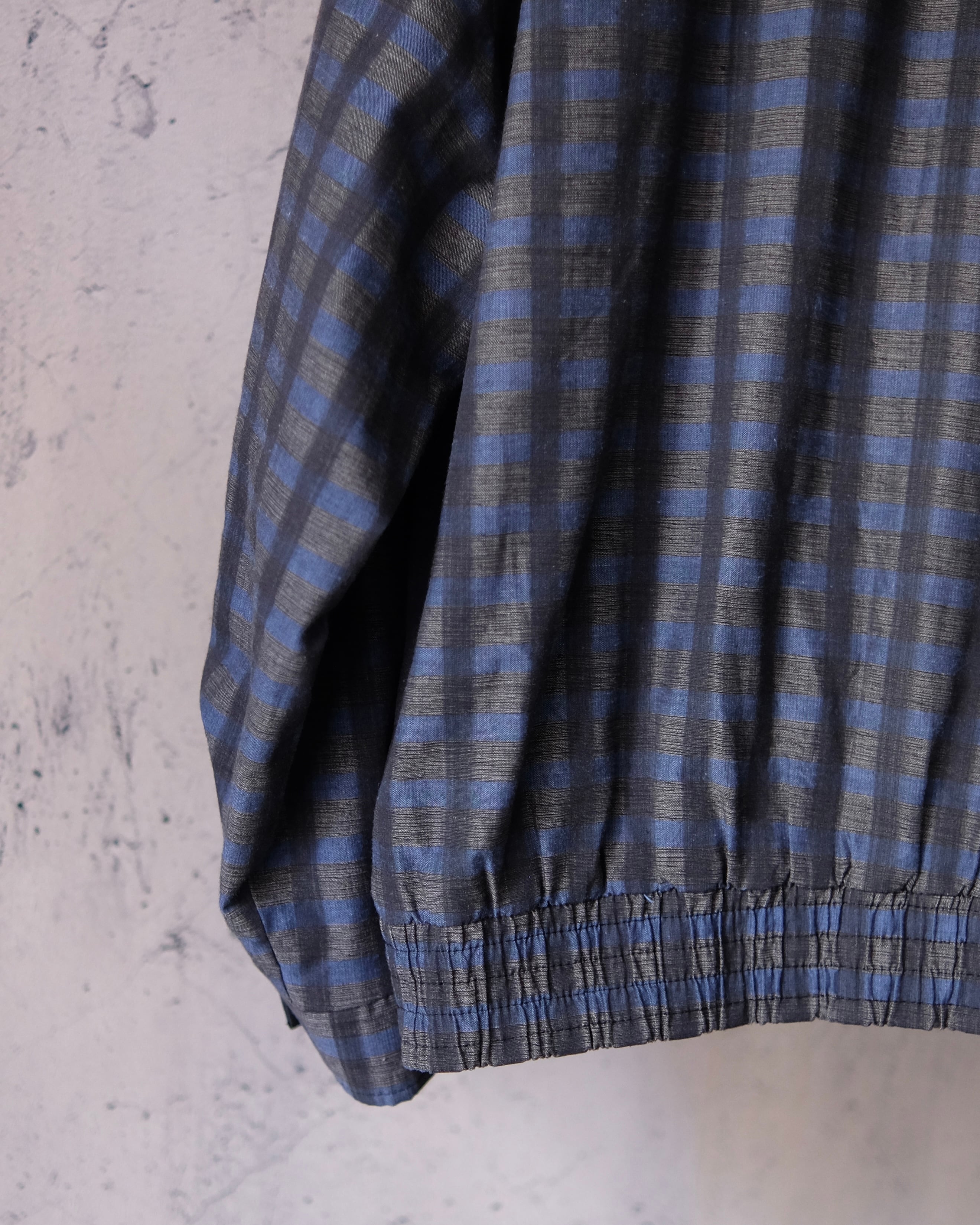 カラーリングはダークグレーとブルーのチェックパターンで、全体にあしらわれているのですが古着ではあまり見かけない大人な配色になっており、個人的にこの色の組み合わせはかなり気に入っております。派手すぎず地味すぎず、合わせるアイテムを選ばない絶妙なバランスだと思います。