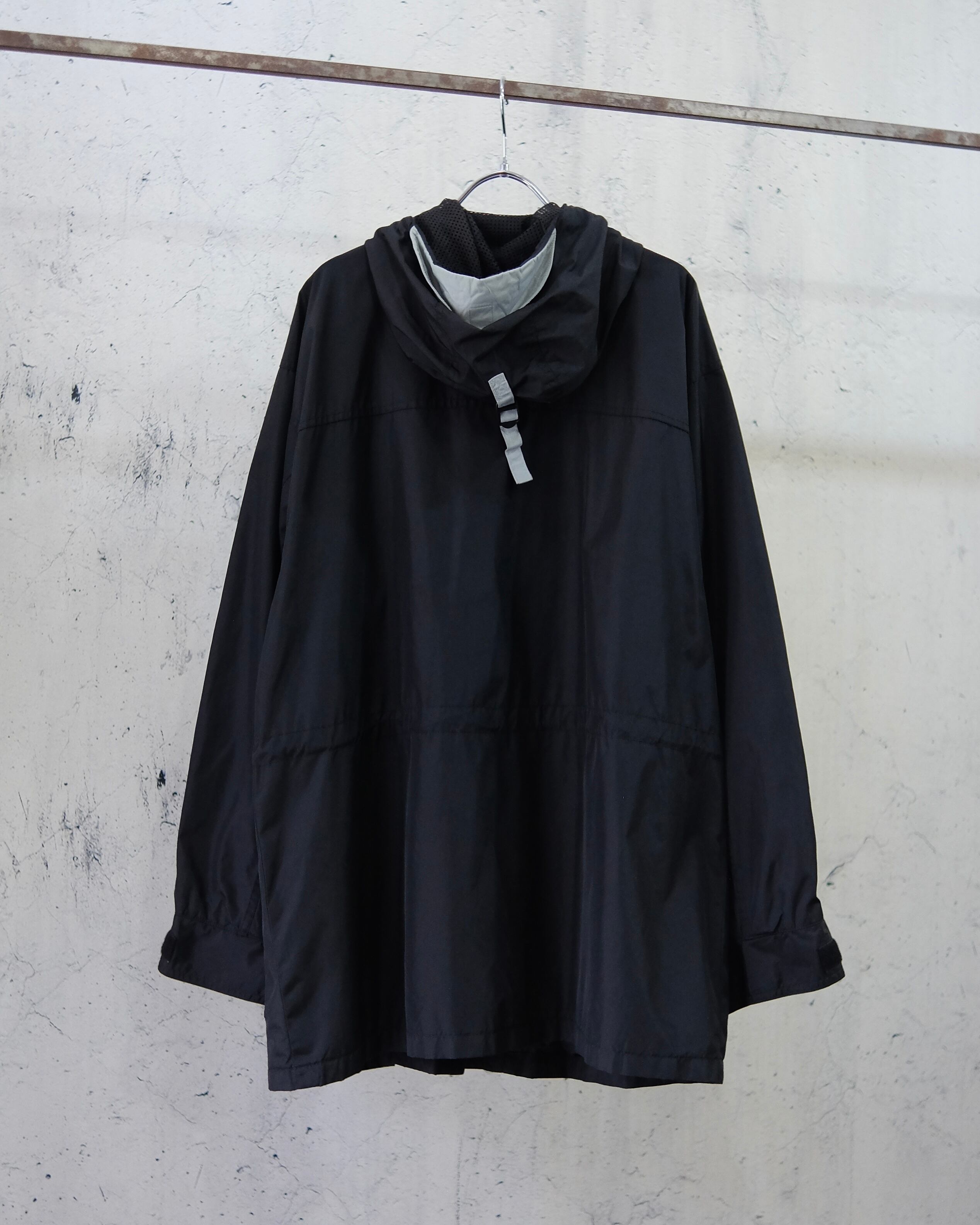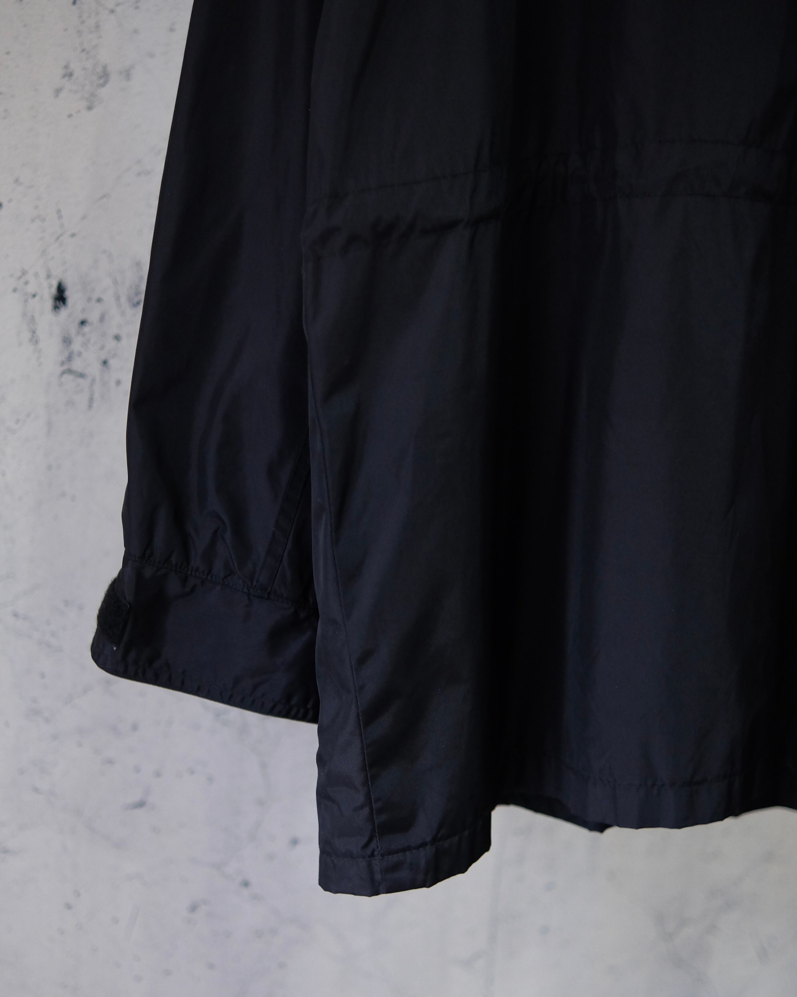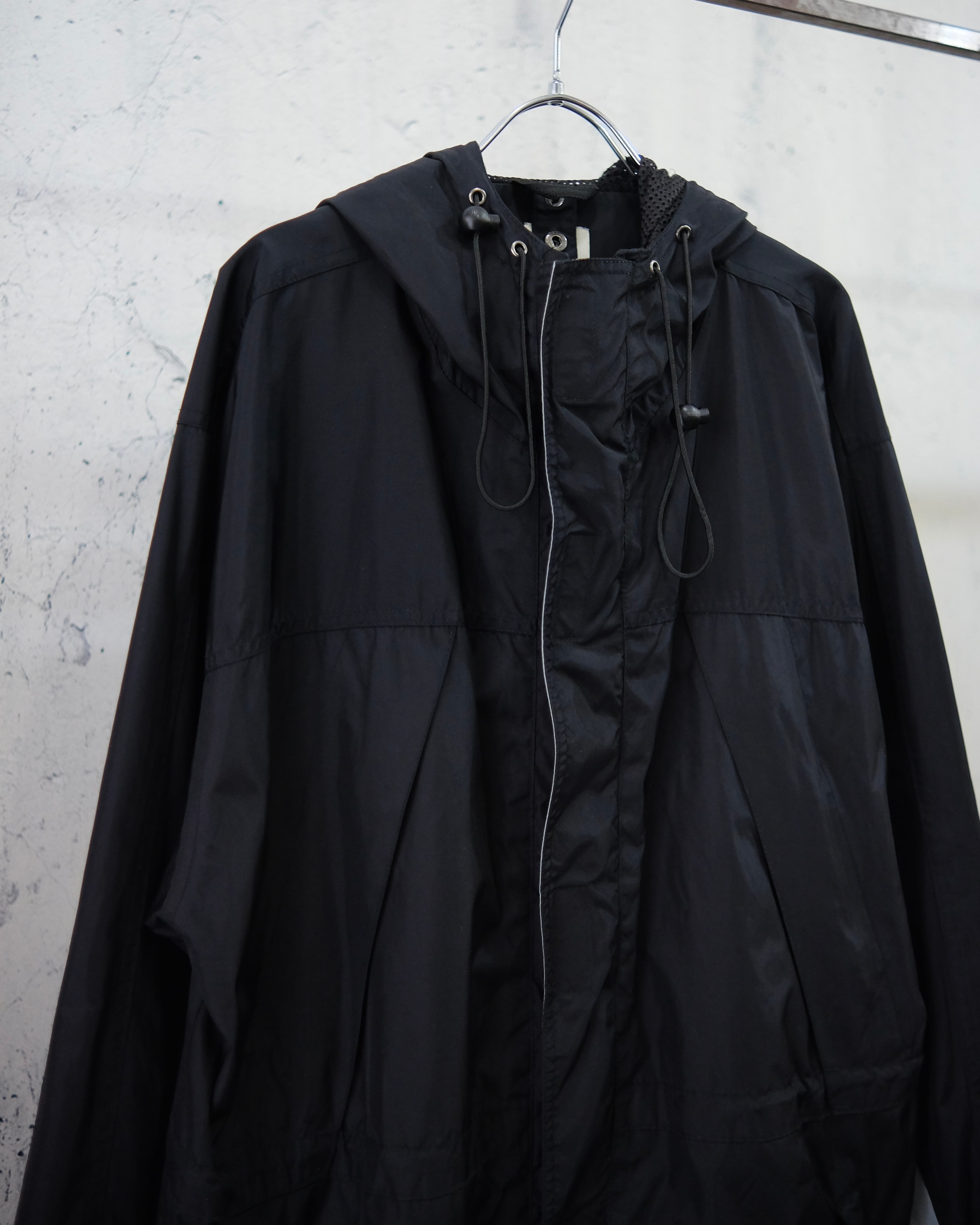 今回はナイロン素材のアウトドアライクなライトアウターで、カラーリングは人気のブラック。フロントには面ファスナーのベルクロテープやダブルファスナーが採用されており、どことなくスキーウェアを彷彿とさせるデザインが個人的にかなり好きです。機能性の高いディテールが随所にありながらも全体的にはシンプルにまとまっており、内ポケットも完備しているので実用面での扱いやすさも申し分ありません。