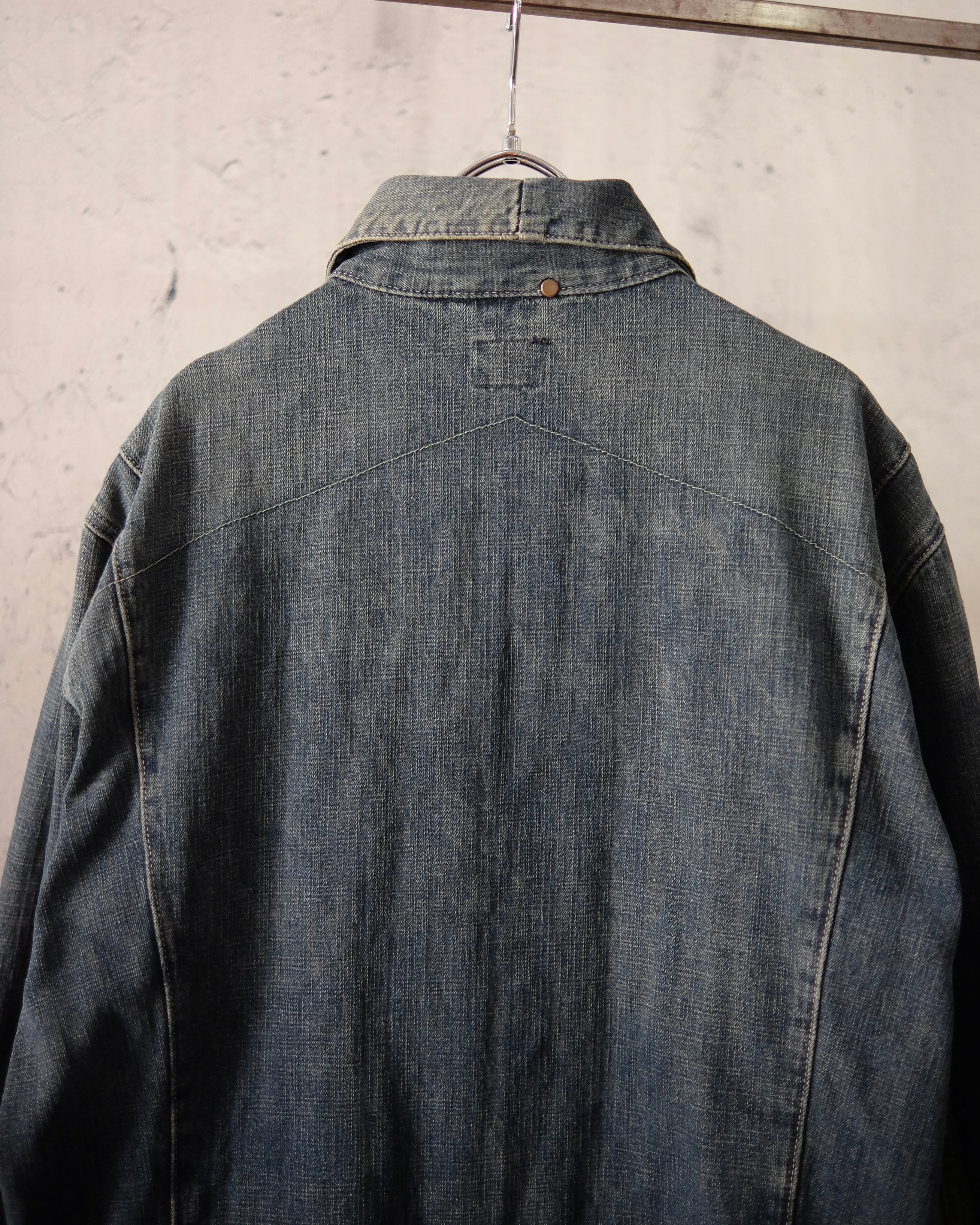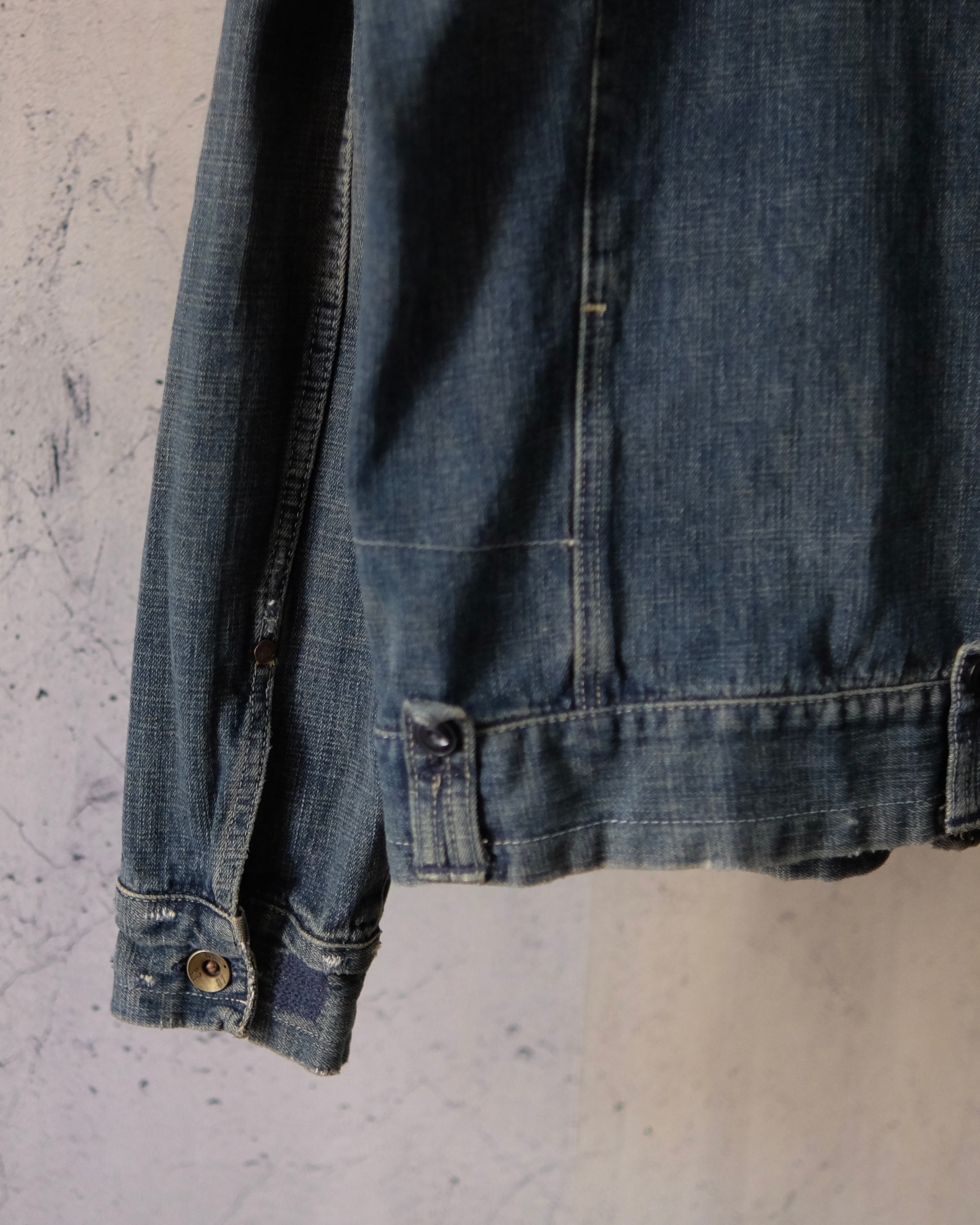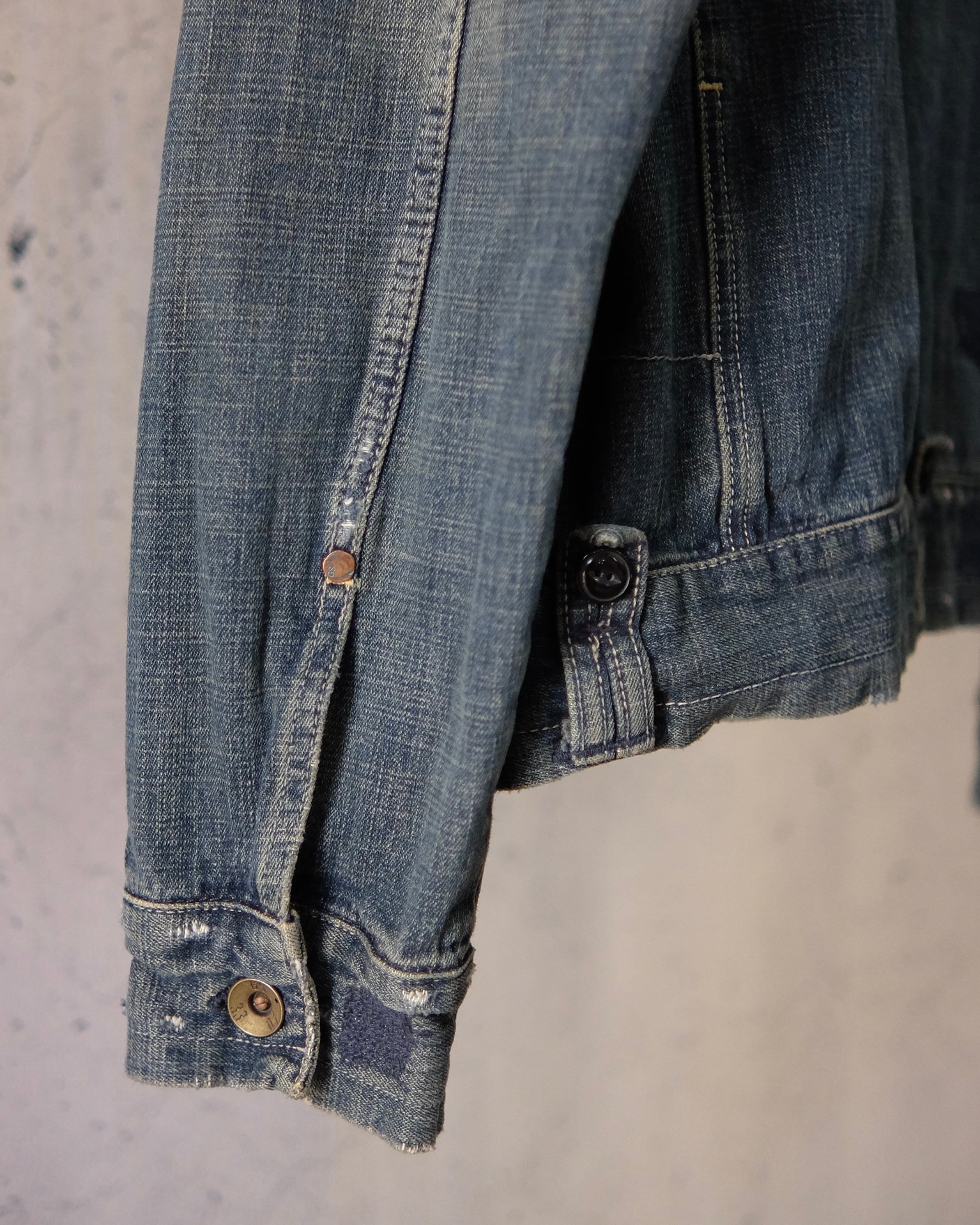 こちらのデニムジャケットは元々リジットだったと思われ、その証拠にケアラベルにしっかりと色移りしております。なので風合いはまるでヴィンテージ感ある風合いは時間により作られており新品で買えないからこその雰囲気がございます。