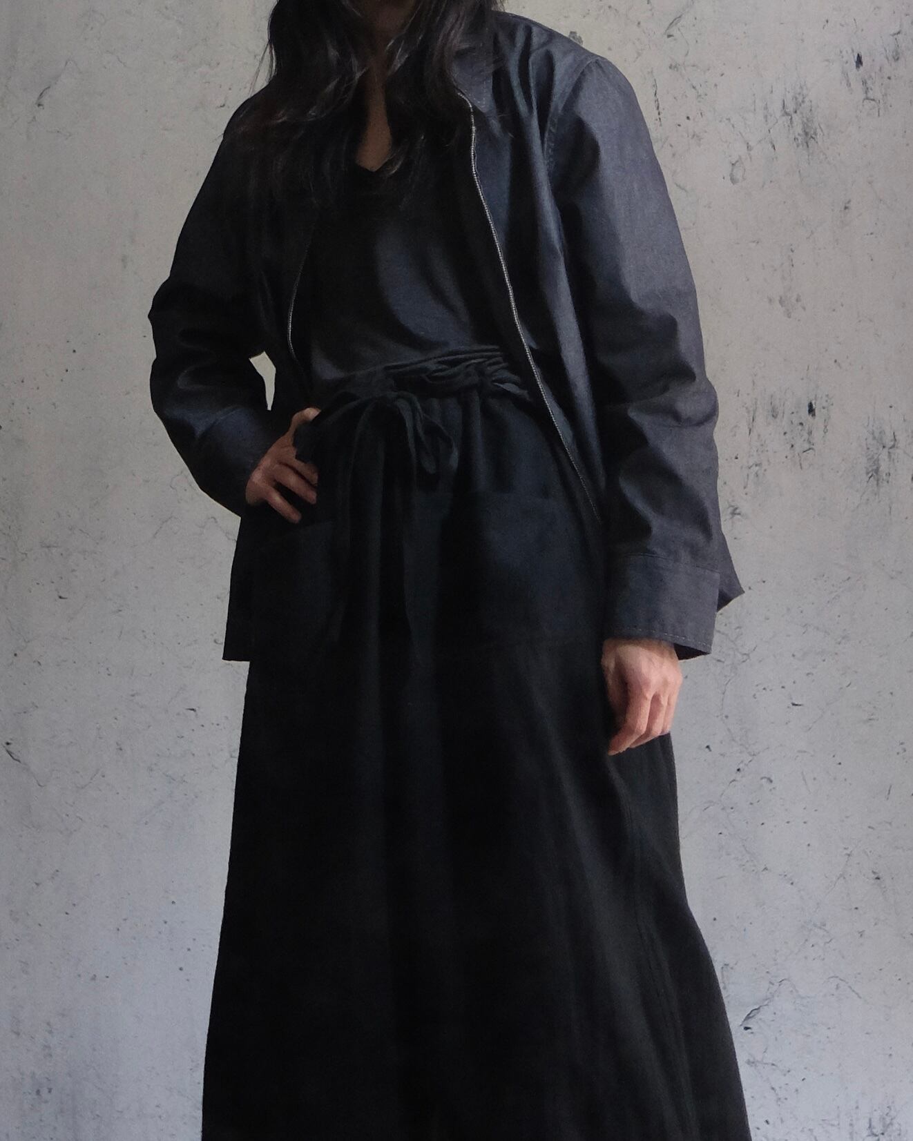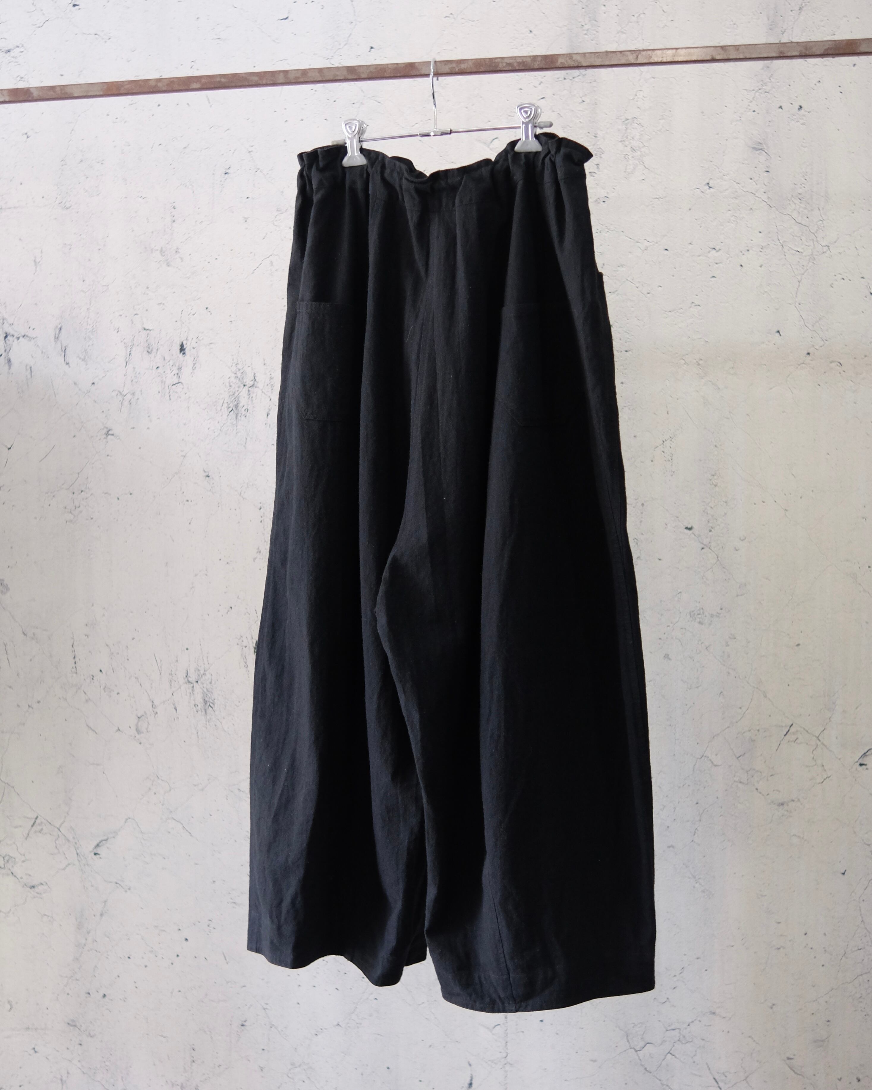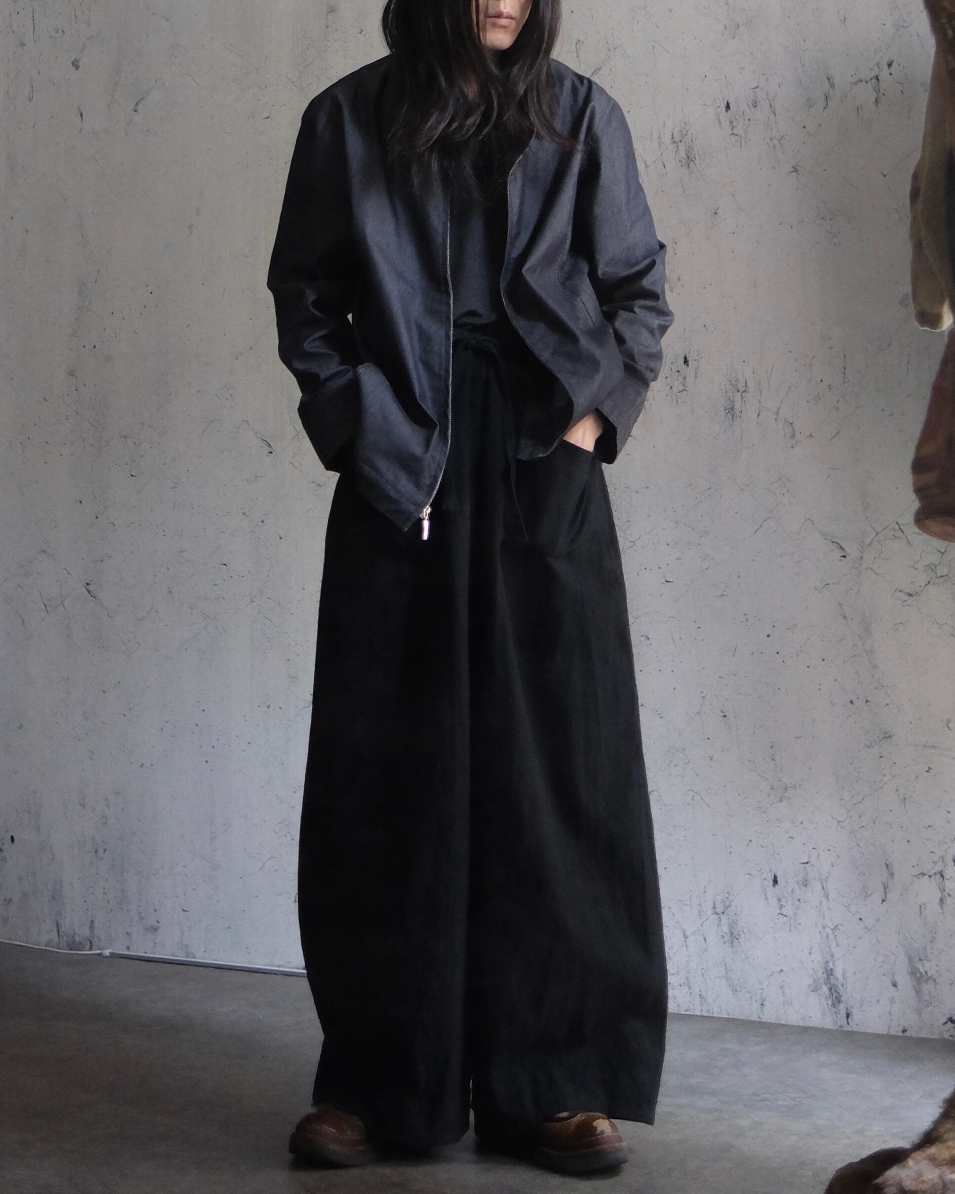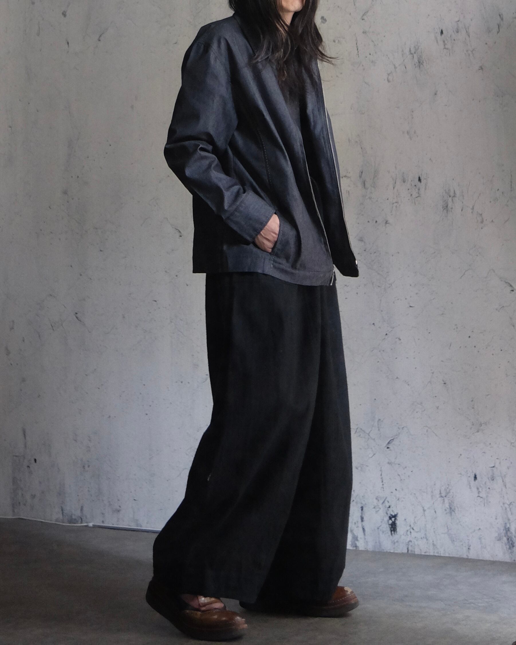 テーパードがきいており前後に膨らみが出る様にもなって動きやすさを立体的作る事で補っておりデザイナーズの様な空気感がございます。